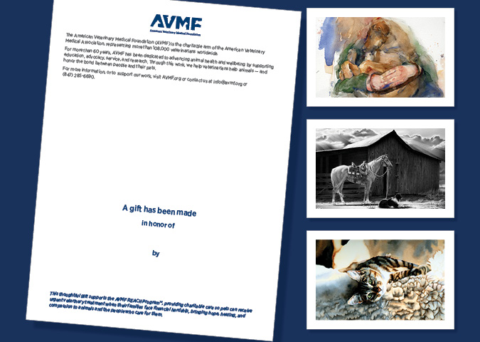 Your gift supports AVMF programs that improve the health and well-being of animals and the people who care for them. With every card you send, you’re not only honoring someone meaningful—you’re helping create hope, healing, and compassion within the veterinary community.